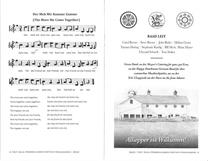 Oley Daal Versammling (Oley Valley Assembly) usually meets in November.